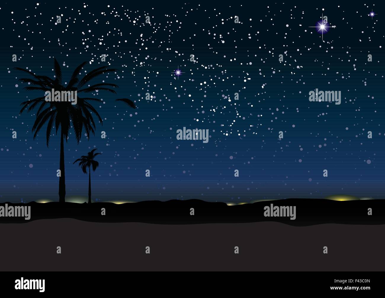 Nights sky with stars and palm trees in silhouette Stock Vector Image & Art - Alamy