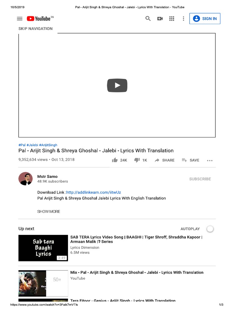 Pal Song Lyrics Translation Jalebi Movie Arijit Singh