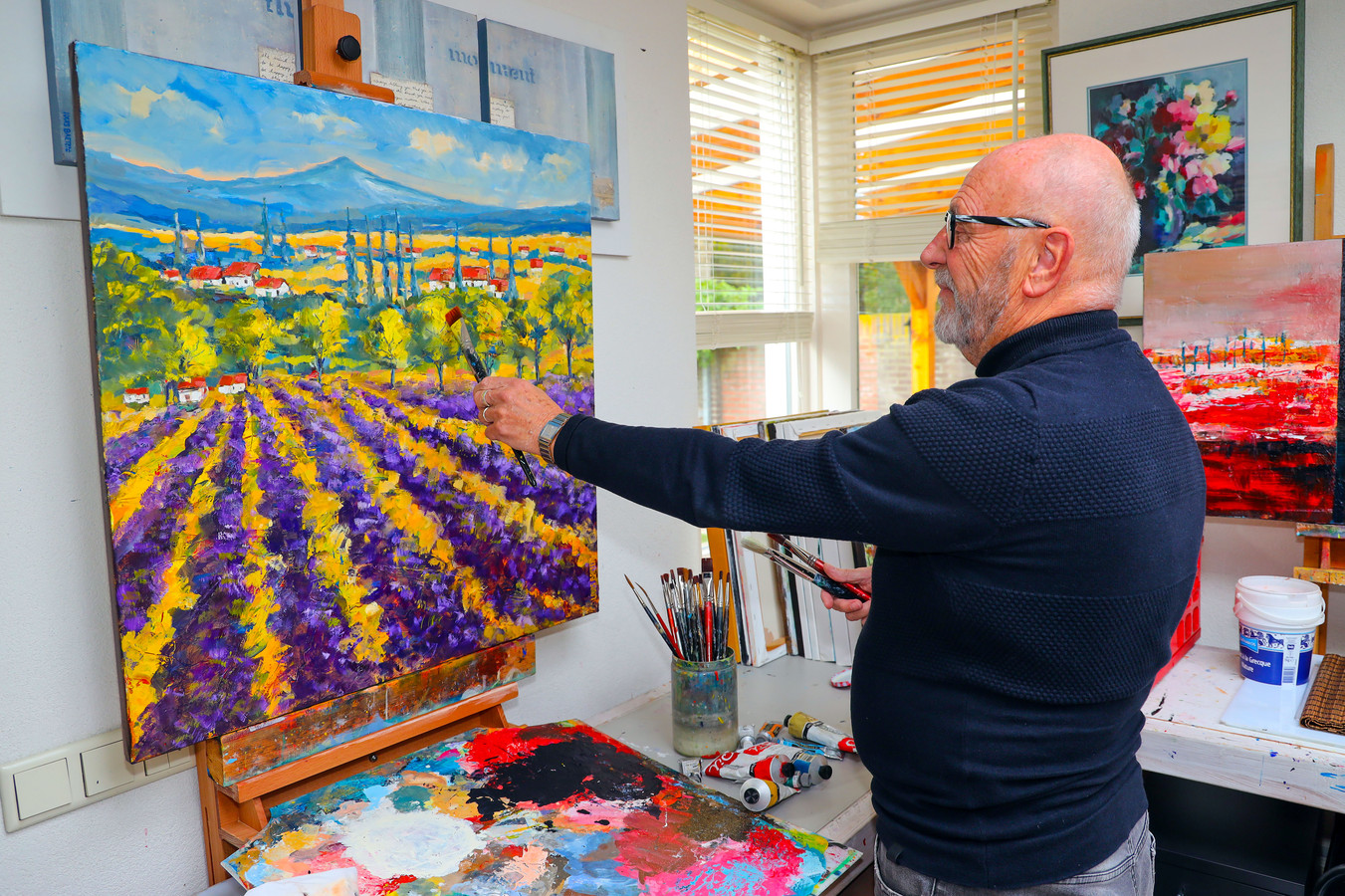Schilder Louis Baeten uit Westerhoven brengt muziek naar het doek tijdens Meesterlijk Hollands | Foto | ed.nl